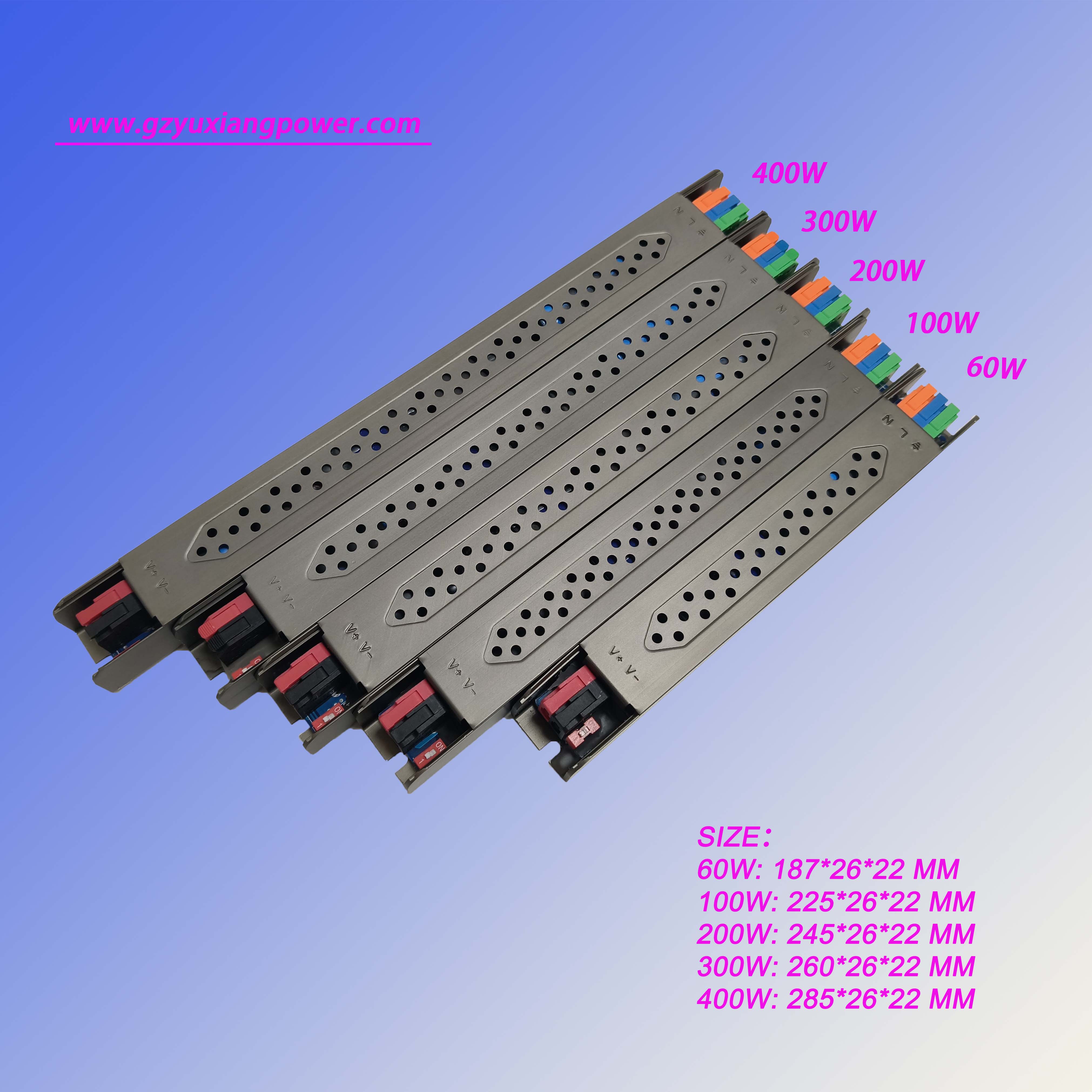 4. Bu ultra dar ayarlanabilir LED güç kaynağı, 60W,100W,200W dahil güç değerleri sunar ve400WKompakt alanlardan büyük ölçekli projelere kadar çeşitli güç gereksinimlerini karşılar.